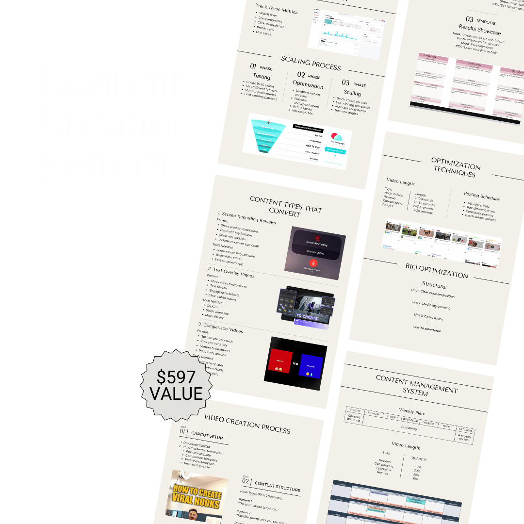 BONUS #2: Content Creation System ($597 value) Zero-identity content templates that drive sales without showing your face.