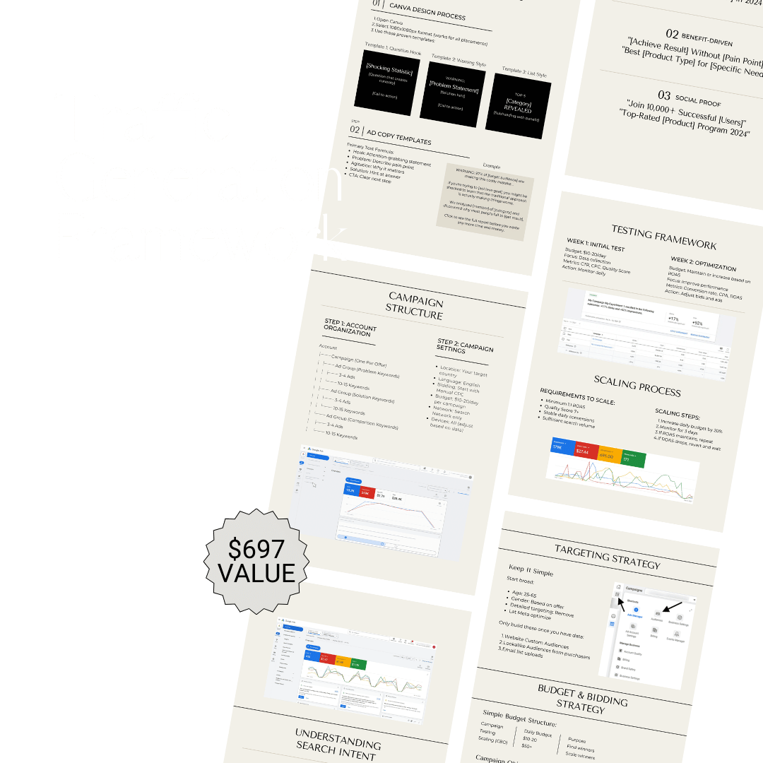 BONUS #1: Traffic Generation Framework ($697 value) Complete Google and Meta ads system for generating profitable traffic from day one.